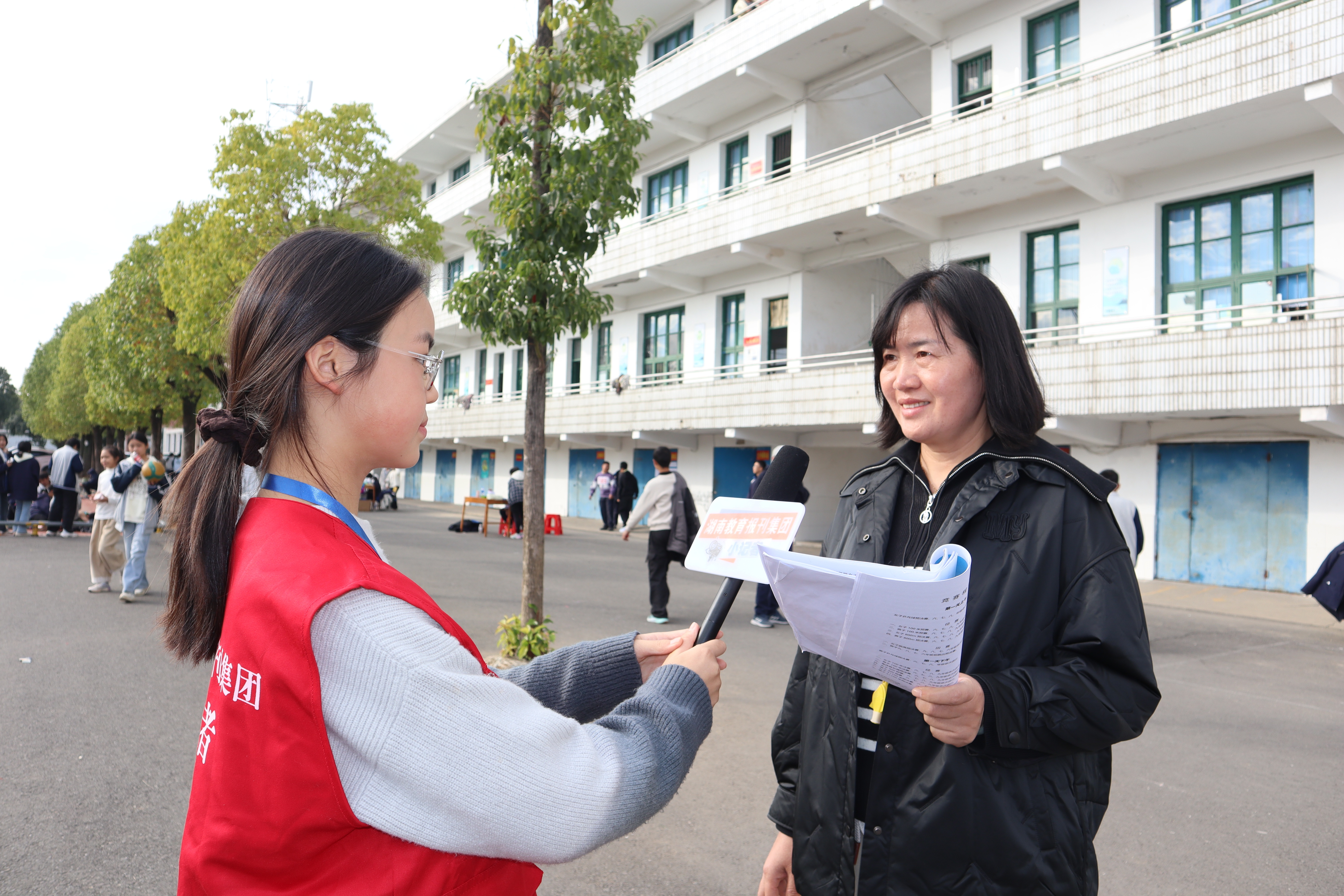 赛场之外,责任与坚守同样闪耀。总裁判长孙晓菊老师穿梭于各个赛场,全程统筹调度赛事安排,带领工作人员细致核对成绩、维护现场秩序,确保各项比赛有序推进。休息间隙,孙老师接受了小记者采访,她表示:“运动会组织严密,离不开全体人员的付出,更得益于同学们的良好风貌。希望‘我运动、我快乐、我健康’的理念深植于心。”
