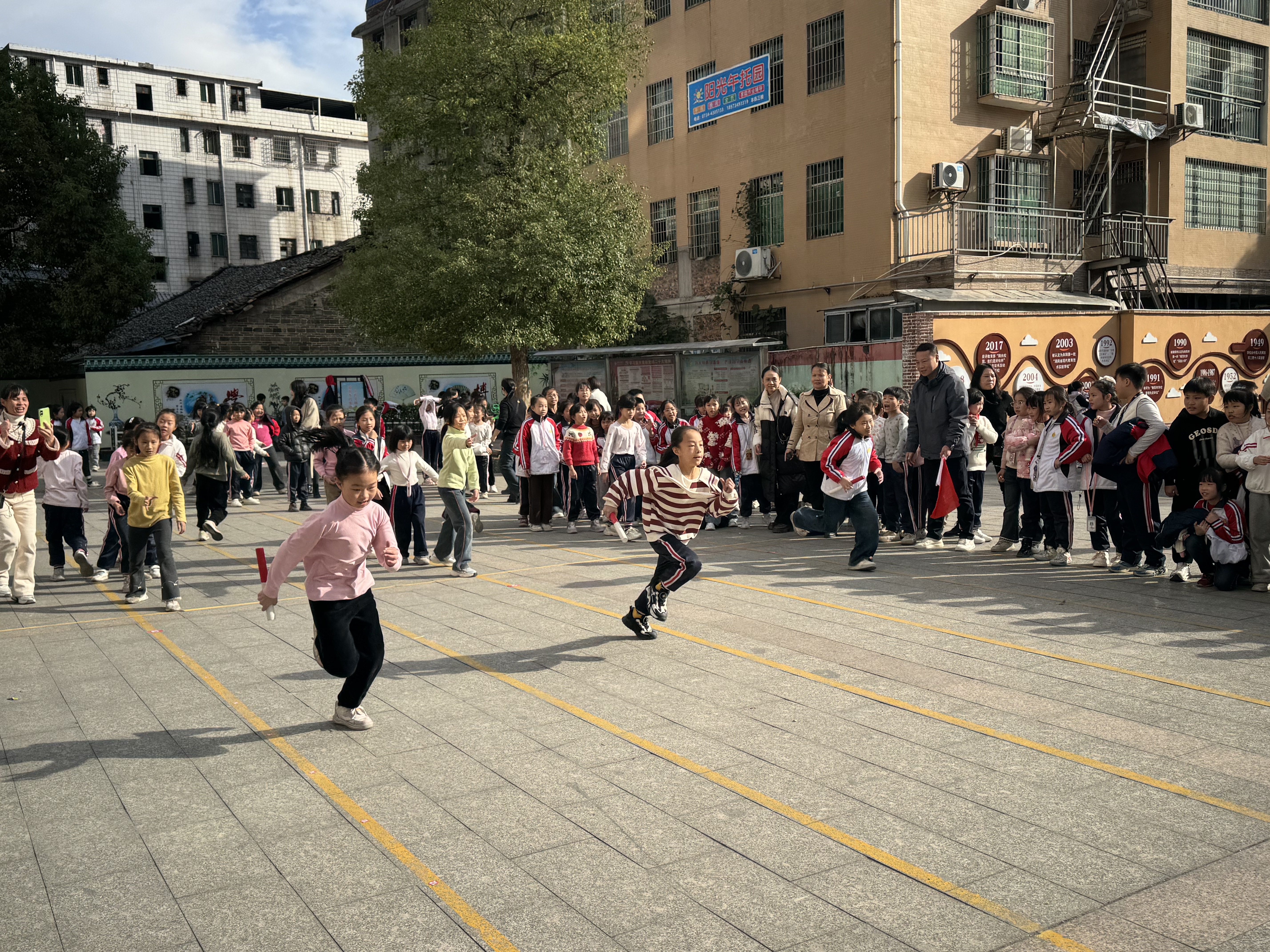赛场边,各班的啦啦队成为另一道亮丽风景。他们挥舞着自制的加油牌,有节奏地呼喊着班级口号。“六(3)班,加油!”“五(1)班,必胜!”的呐喊声此起彼伏,有的班级还组织起了整齐的加油手势,用最热情的方式为运动员们注入力量。