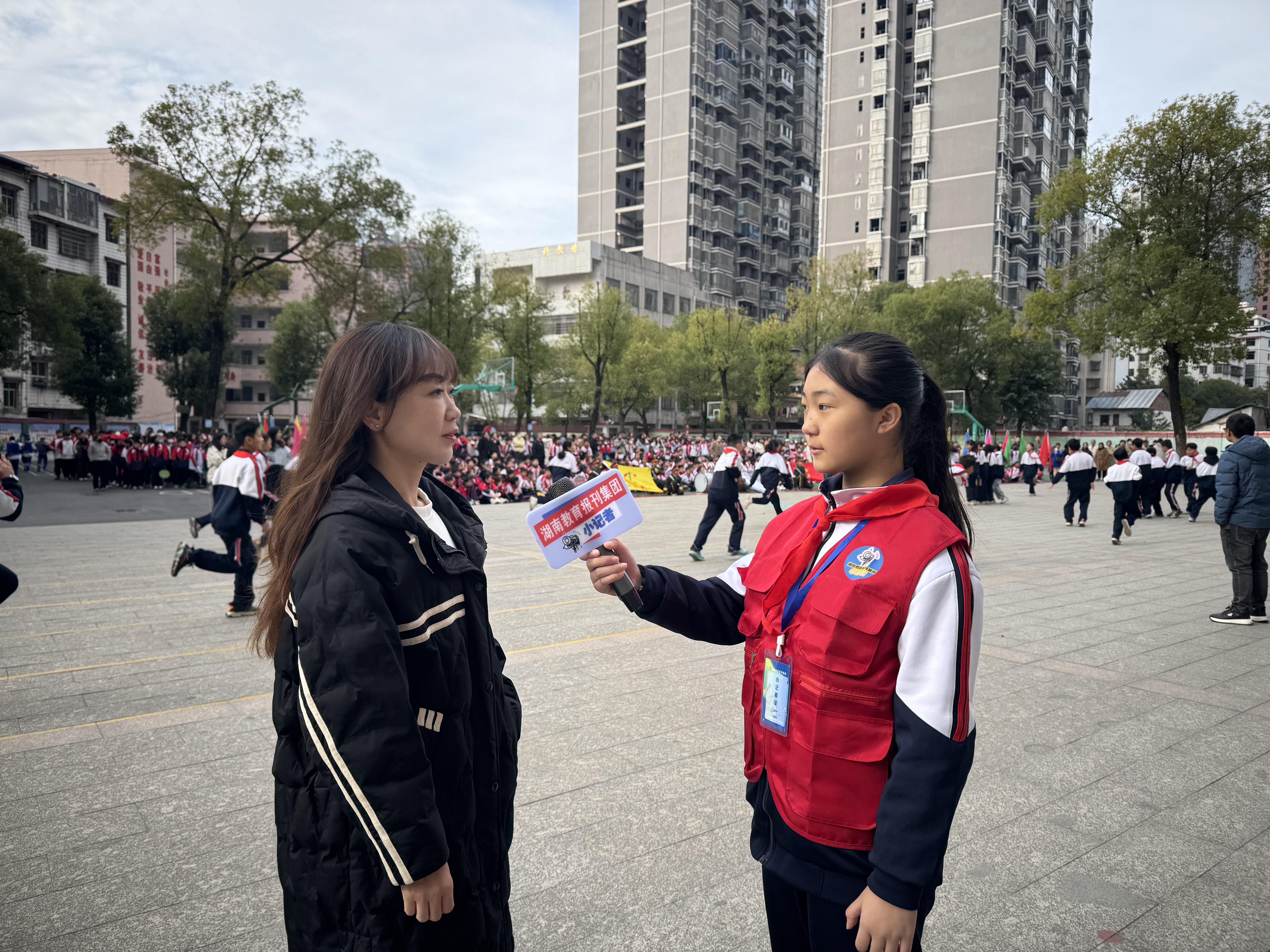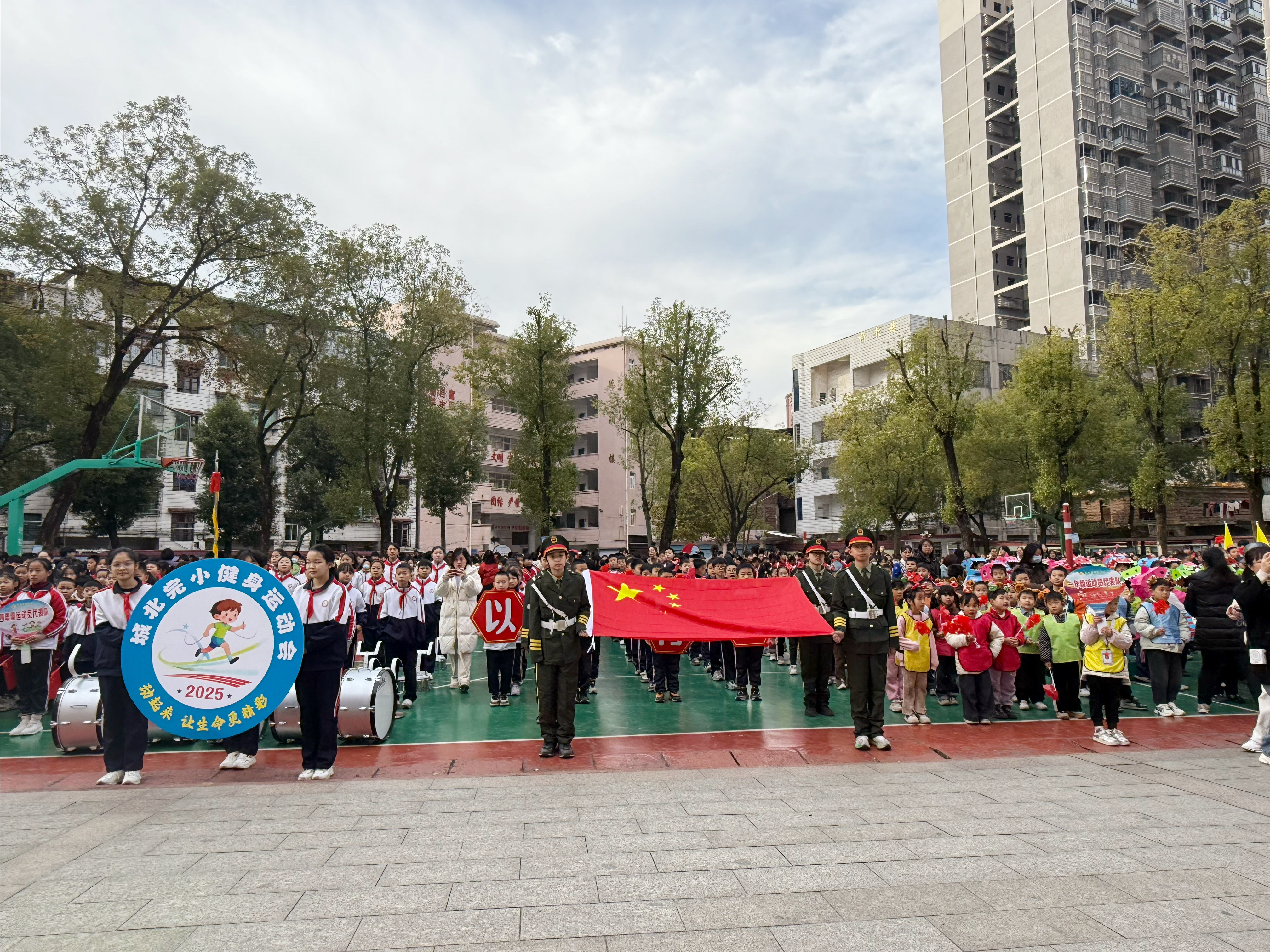 开幕式上,国旗队庄严引领,校旗队、鼓乐队等方阵步伐铿锵,各年级代表队精神抖擞,创意十足的运动口号响彻云霄。升旗仪式后,王副校长为运动会致开幕辞。他在接受采访时表示:“运动会是践行五育并举的重要平台。我们希望孩子们在运动中享受乐趣、增强体质、磨练意志,将赛场的拼搏精神带到学习和生活中!”