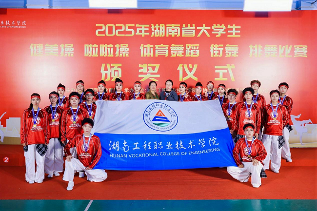 湖南教育新闻网讯(通讯员 朱雅琪)近日,2025年湖南省大学生啦啦操比赛在湖南工程职业技术学院体育馆落下帷幕。经过激烈角逐,湖南工程职院啦啦操队凭借精湛的舞技、默契的配合和富有创意的编排,在集体街舞啦啦操项目中脱颖而出,荣获第三名,充分展现了工程学子昂扬向上的青春风采。
