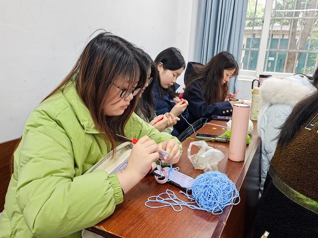 “这门课不是‘坐着听’,而是‘动手做’,更是在打磨中懂‘匠心’。”正在制作发簪的学生王君烨说,单是用细线缠绕一片叶片形状的发簪,就耗时40分钟,仍未必能达预期,自己这才懂传统工艺“慢工出细活”的真谛。2024063001班学生孟研也表示,将专业知识融入传统文化载体,让大家不仅摸清了传统艺术美学逻辑,还在反复打磨中体会到工匠精神“专注、坚守、极致”的内核,找到传统文化现代表达新路径。