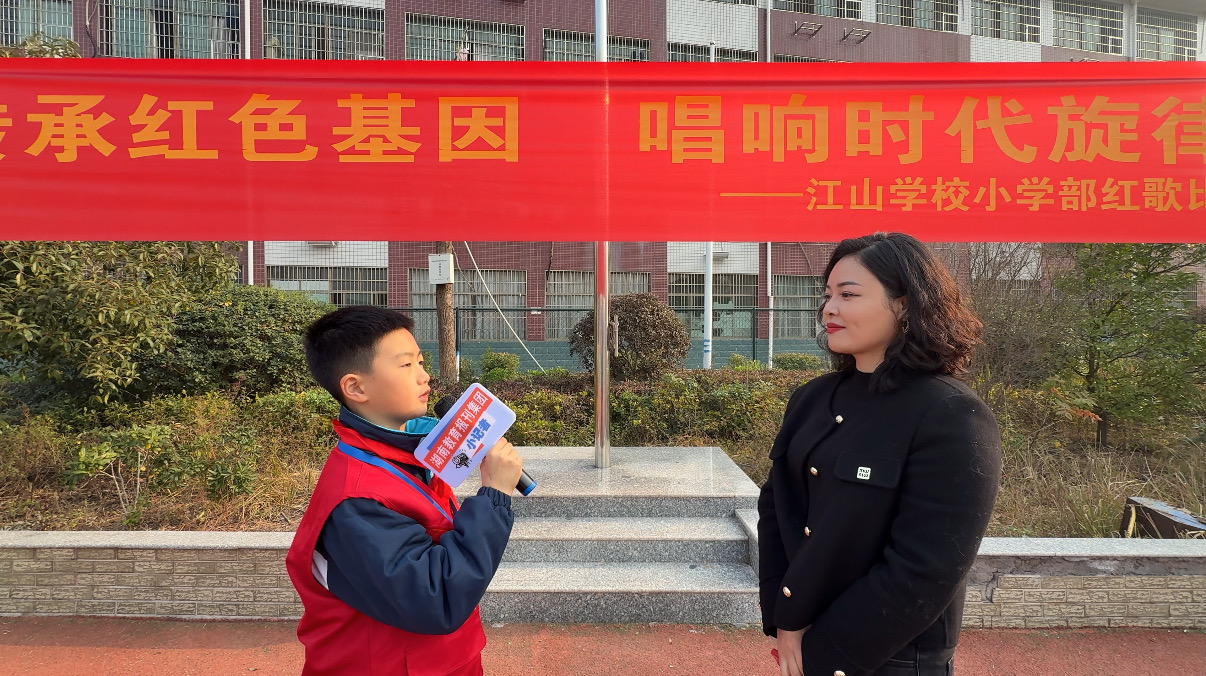谈及活动初衷与育人深意,江山学校小学部校长彭娅对小记者说:“学校以红歌比赛为载体,希望让红歌旋律在孩子们心中深植家国情怀的种子,让红色基因成为他们成长的鲜明底色。这不仅是一场文艺活动,更是学校践行立德树人根本任务、深化爱国主义教育的重要举措,助力孩子们在红色浸润中汲取成长力量,厚植爱国情怀。”