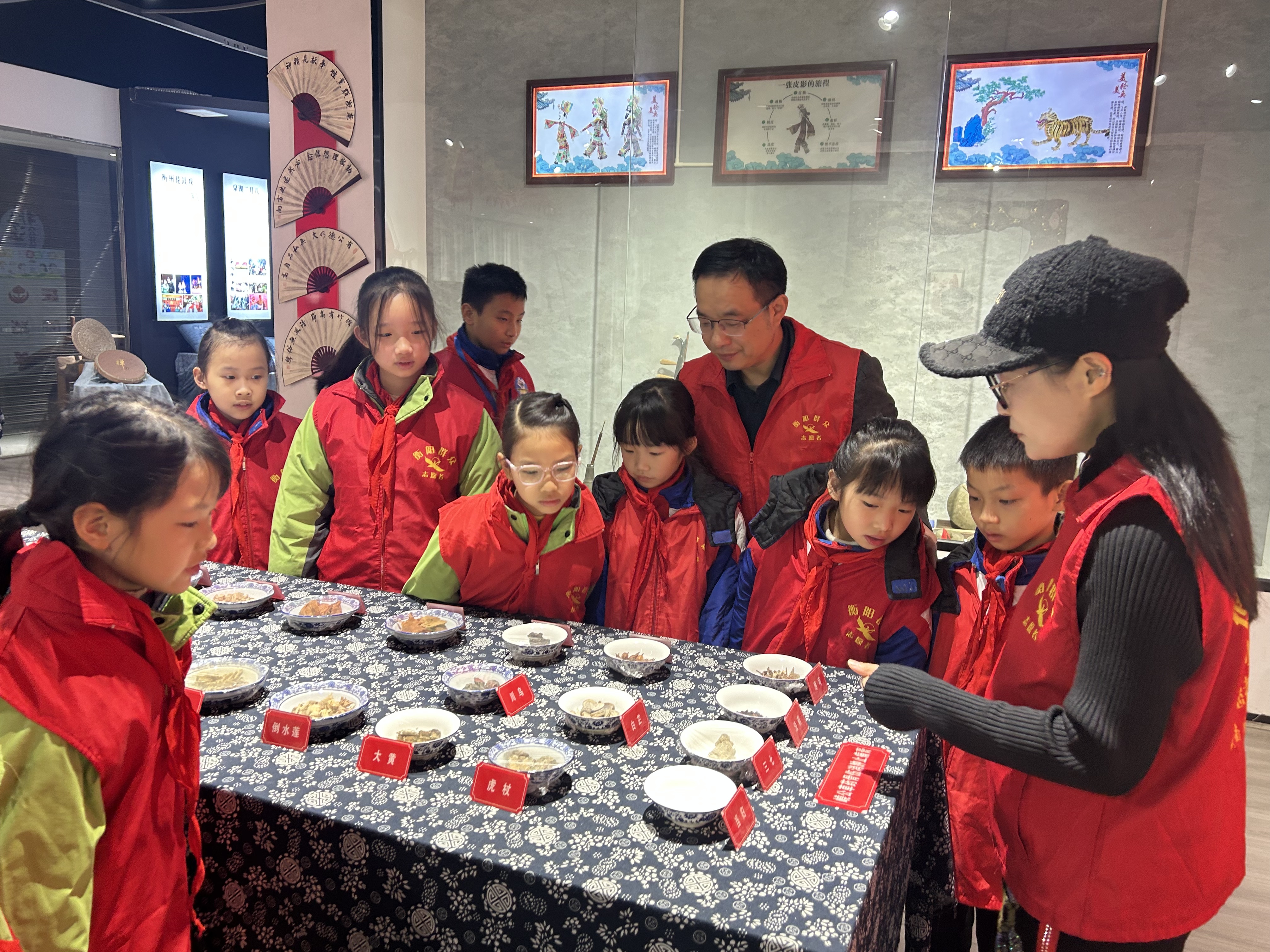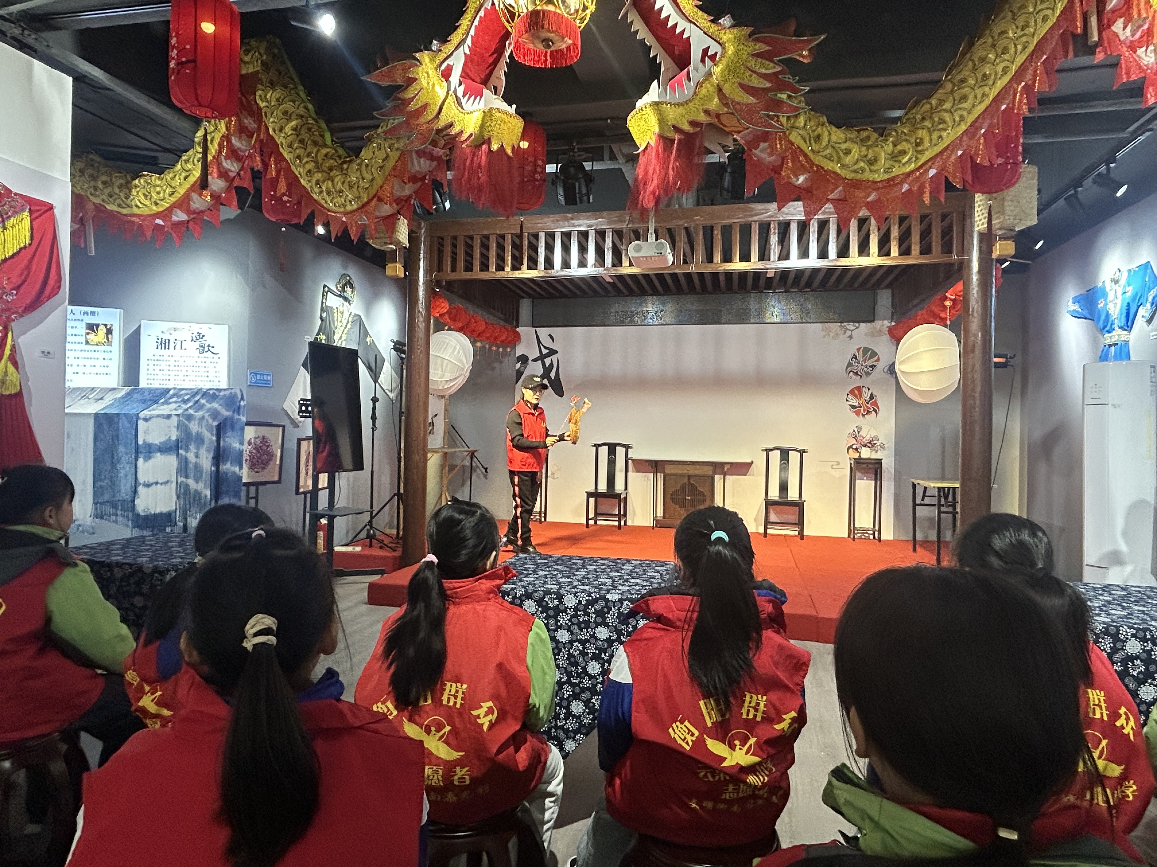 活动现场,志愿者们在老师带领下参观非遗展厅,聆听工作人员讲解戏曲脸谱、传统医药等非遗项目的文化内涵,还近距离观察了蓝染服饰、传统农具等展品。随后的非遗小课堂上,志愿者们围坐于非遗展演台旁,学习非遗技艺的历史渊源,沉浸式感受传统文化魅力。参与活动的小志愿者张馨艺表示:“通过今天的体验,我更懂了传统文化的珍贵,以后要做非遗的小小宣传员。”