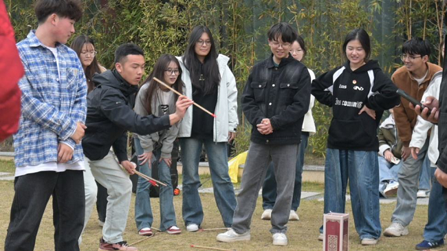 在板仓素质拓展基地,团学干部们通过分组拓展深化团队协作意识。各小组以创意队名、响亮口号和整齐队形展现青春风采后,随即投入投壶、团队接球、四人拔河等特色项目。这些兼具趣味性与协作性的项目,既锻炼了个人能力,更凸显了团队协作的重要性,进一步增进了团学干部之间的了解与信任。团学干部们结合研学见闻与拓展体验,围绕如何将革命精神融入学生服务以及如何推动团学工作创新出成效展开热烈讨论。学院团学干部们一致认为,要将杨开慧烈士的坚定信仰转化为服务同学的初心,把素质拓展中锤炼的协作精神运用到团总支学生会实际工作中。