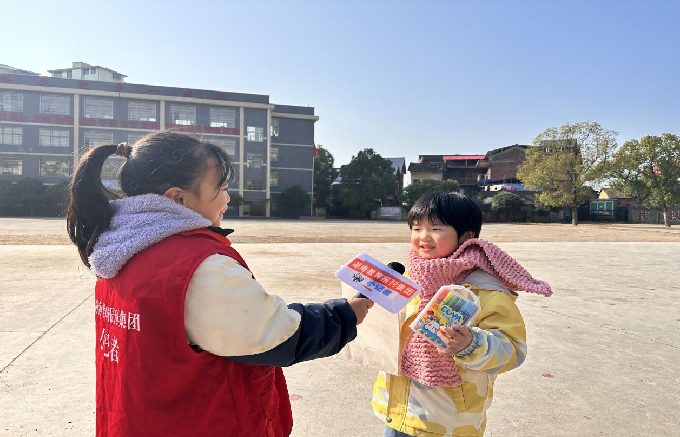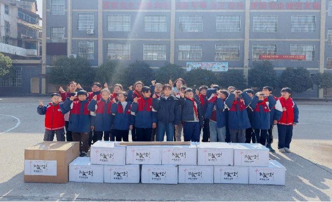 湖南教育报刊集团衡阳县小记者站(小记者凌一涵)12月26日,“赤橙公益”的志愿者哥哥姐姐们,为衡阳县渣江中心小学学生送来了亲手编织的围巾,“致美计划”的美育物资包也如约而至。双重爱心为这个冬天添满温情。