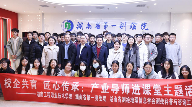湖南教育新闻网讯(通讯员 郑慧敏 黄栋良)近日,湖南工程职业技术学院测绘地理学院“楚怡工匠计划”测绘工程专业本科班走进湖南省第一测绘院,开展以“校企共育 匠心传承:产业导师进课堂”为主题的实地教学活动。本次活动由湖南工程职业技术学院、湖南省第一测绘院及湖南省测绘地理信息学会测绘科普与咨询工作委员会联合举办,是深化产教融合、推动工匠精神传承的重要实践。