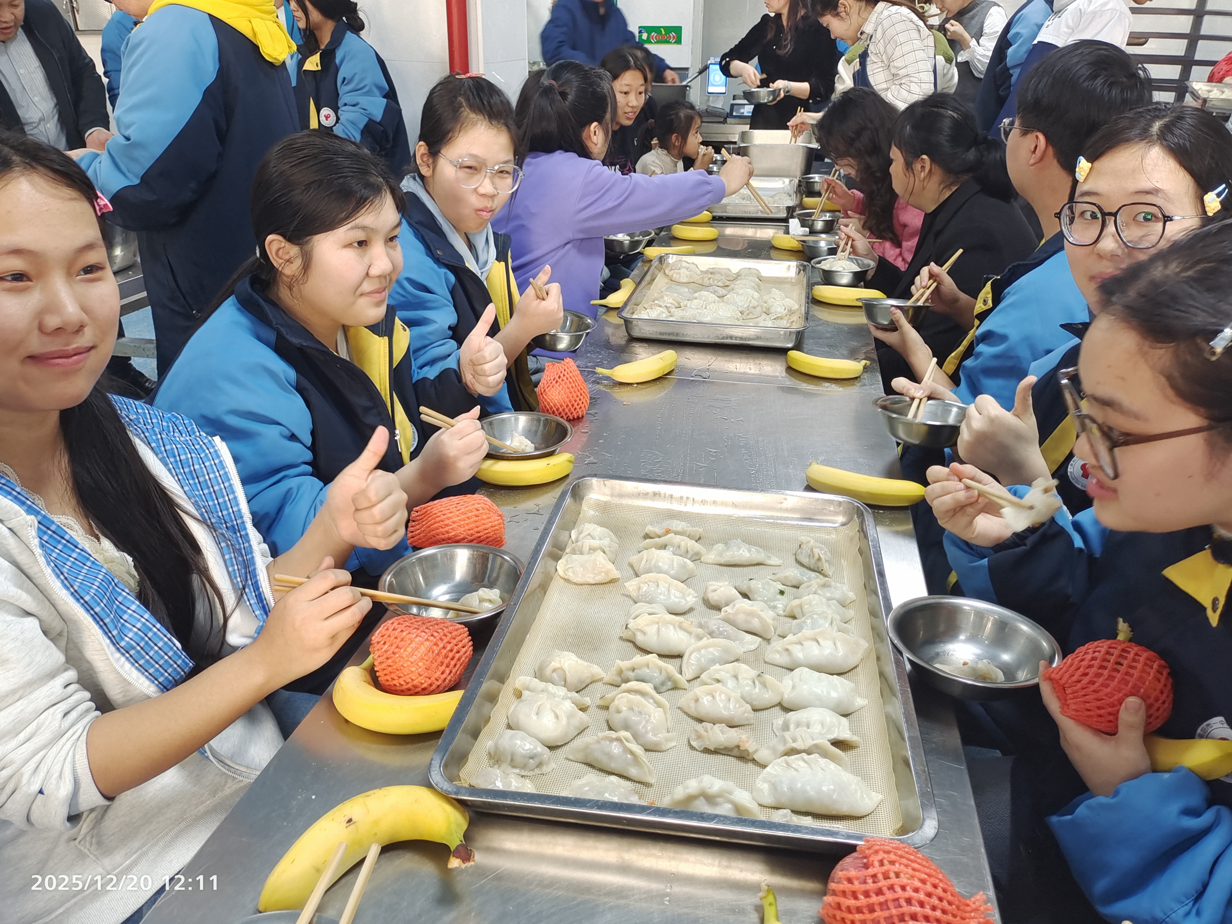 经过两个多小时的齐心协作,一盘盘凝结着大家劳动成果的饺子被送入厨房。当热气腾腾、香气四溢的饺子端上餐桌时,同学们品尝着自己的劳动果实,脸上洋溢着满足与自豪的笑容。