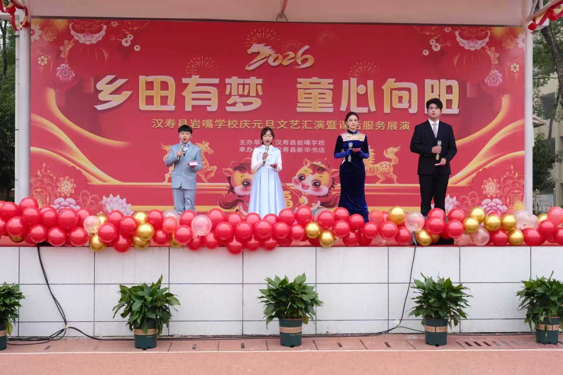 湖南教育新闻网讯(通讯员 丁俊杰 丁刘艳)12月29日,汉寿县毛家滩回维乡岩嘴学校开展了以“乡田有梦,童心向阳”为主题的元旦系列活动。此次活动融合课后服务兴趣小组作品展示、文艺汇演、诗词过级等多元内容,更以全程直播拓宽参与维度,让孩子们在赏艺品文里喜迎新年,在协作闯关间收获成长。