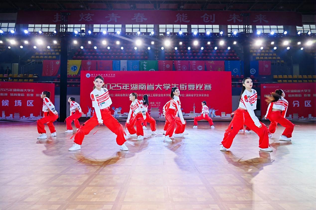 湖南教育新闻网讯(通讯员 朱雅琪)12月7日至8日,2025年湖南省大学生街舞赛项在湖南工程职院体育馆激烈角逐。湖南工程职院代表队以无可挑剔的表现、极具创意的编排和昂扬沸腾的团队精神,力压群雄,获得高职高专甲组Street Jazz第一名。