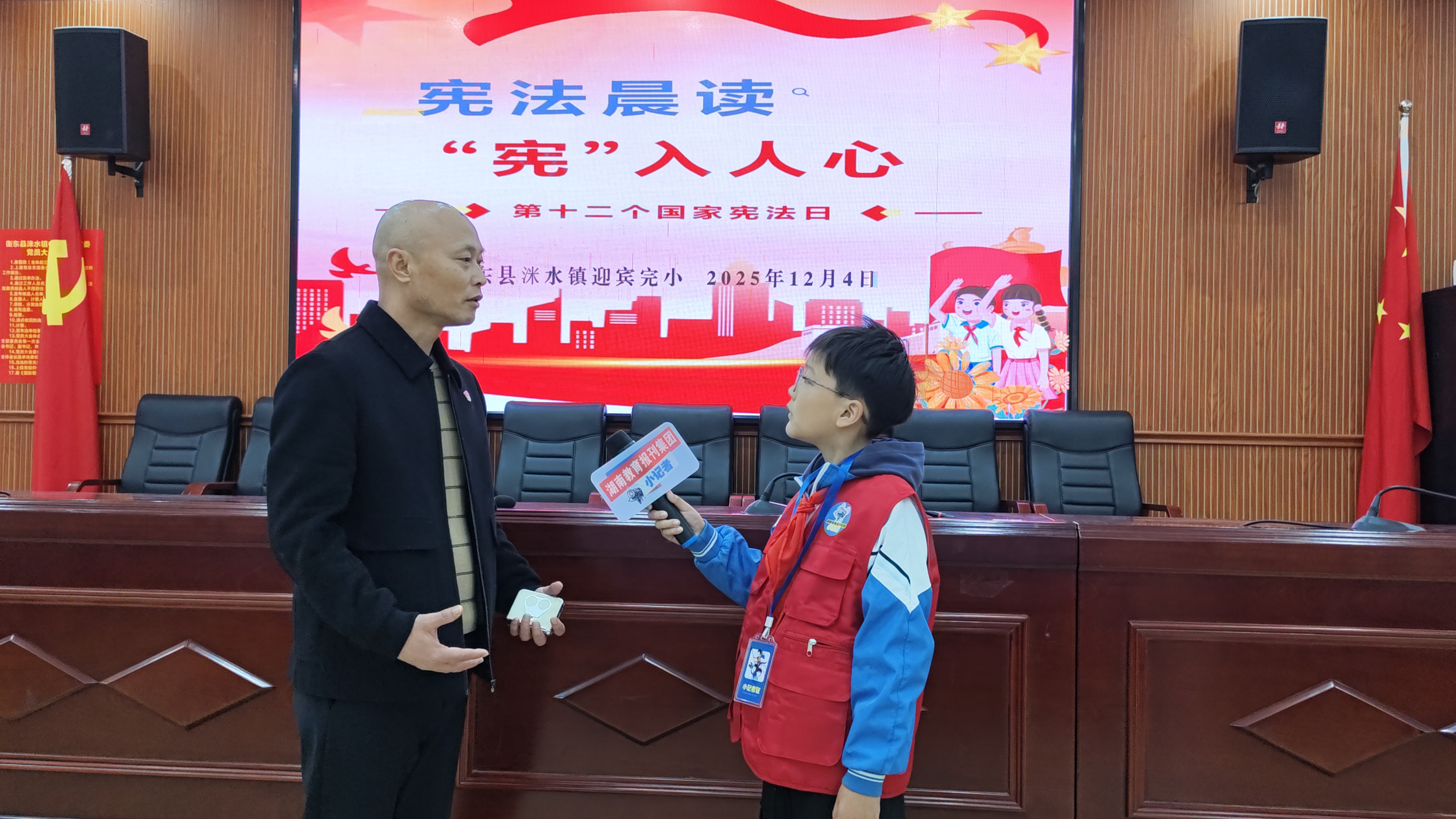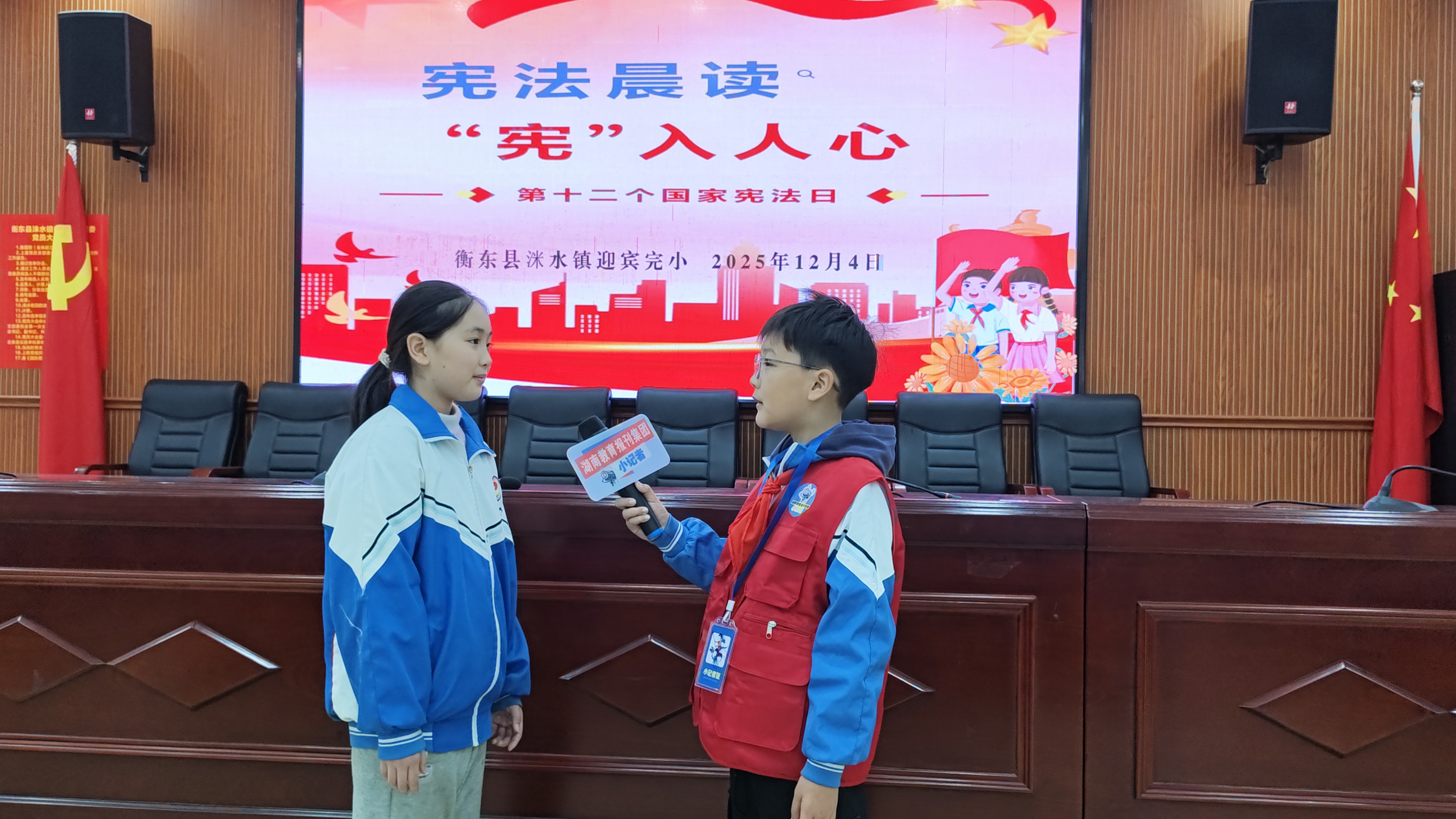 湖南教育报刊集团衡东县小记者站(小记者 陈浩轩)今年12月4日,是第12个国家宪法日,当日,衡东县迎宾完小组织开展“弘扬宪法精神,建设法治校园”主题教育活动,旨在深入学习、宣传宪法,增强师生法治观念,让宪法信仰在师生心中生根发芽。