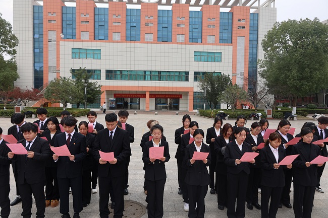根据湖南省教育厅统一部署,湖南工程职业技术学院认真组织“宪法晨读”活动。活动现场,师生神情庄重、身姿挺拔,齐声诵读宪法部分条款。洪亮的诵读声回荡在乐学广场,深切感受到宪法的庄严与权威。