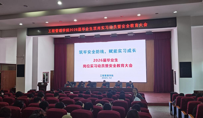 会后,工程造价专业2023055204班班长彭永乐表示,将牢记学院领导老师的嘱托,严格遵守实习纪律,坚守安全底线,主动学习、积极实践,努力在实习岗位上展现工程管理学院学子的良好风貌。本次动员大会明确了岗位实习的目标任务与纪律要求,切实强化了学生的安全意识与责任担当,为2026届毕业生岗位实习工作的顺利开展奠定了坚实基础。据悉,学院始终高度重视实习过程管理工作,将持续做好服务保障,助力学生在实习实践中锤炼本领、成长成才,为工程行业输送更多高素质应用型人才。
